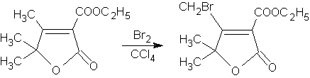 3-Бромметил-4,4-диметил-2-карбэтокси-2-бутен-4-олид получают также действием N-бромсукцинимида на 2-карбэтокси-3,4,4-триметил-2-бутен-4-олид в четыреххлористом углероде в присутствии радикальных инициаторов (перекись бензоила, ДАН и др.)1.