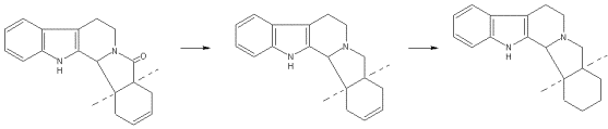 4а,13с-цис-1,2,3,4,4а,5,7,8,13в,13с-декагидро-13Нбенз(g)индоло/2,3-a/индолизин, C18H22N2, мол. вес 266,390 – белое кристаллическое вещество, растворимое в хлороформе, спирте, ацетоне, нерастворимое в воде.