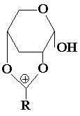 На основе анализа строения конечных продуктов этой реакции экспериментаторы предполагали, что на первой стадии происходит протонирование атома кислорода О1 и образуется ацилоксониевый ион следующего строения: