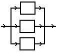 При параллельном соединении, технологический поток разделяется на несколько потоков, которые поступают на различные элементы ХТС, причем каждый аппарат поток проходит только один раз. Выходящие из элементов потоки могут объединяться в один поток, а могут выходить раздельно.