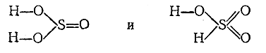 10) Равновесие между безводной и гидратированной формами сернистого газа в растворе определяется соотношением: [SO2 ][H2O]/[H2 SO3 ] = 16. Для сернистой кислоты (K1 = 2·10–2и К2 = 6·10–8) принимают возможность существования двух структур: