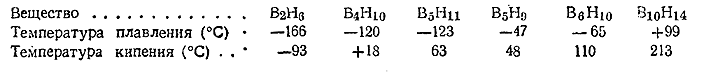 Лучше других изучены шесть бороводородов, температуры плавления и кипения которых приводятся ниже: