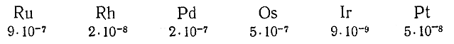Все платиновые металлы относятся к числу мало распространенных элементов. Содержание каждого из них в земной коре оценивается следующими величинами (в %):