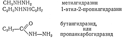 44. Органические производные гидразина называются по наименованию алкильного радикала, от которого они производятся, добавлением суффикса -гидразин.