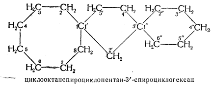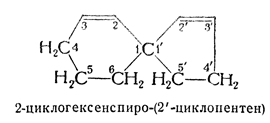 42.3. (вариант к А—41.5). — Номенклатура, принятая в правиле А—41.5, применима также к моноциклическим компонентам, одинаково насыщенным; спиросвязь обозначается номером 1.