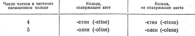 5* Слоги, обозначающие величину колец, содержащих 3, 4 или 7—10 членов, происходят: «ир» от tri-; «ет» от tetra-; «еп» от hepta-; «оц» и «ок» от octa-; «он» от nопа-; «ец» и «ек» от deca-.