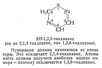 1.52. — Когда одни и те же гетероатомы встречаются в кольце несколько раз, направление нумерации выбирают так, чтобы они получили наиболее низкие номера.