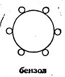 Не пытаясь составить какое-либо представление о способе связи шести углеродных атомов в молекуле бензола, Лошмидт обозначал бензол символом