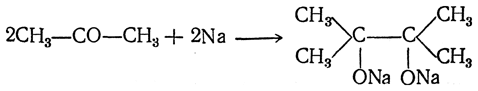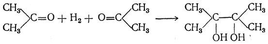 Восстановление кетонов часто может идти также и в другом направлении, а именно с присоединением атома водорода к кислороду карбонильной группы, причем атомы углерода карбонильных групп двух молекул связываются между собой, например: