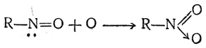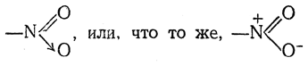 Можно предположить, что нитрогруппа образуется из нитрозогруппы таким образом: атом азота нитрозогруппы несет свободную пару электронов и при взаимодействии с атомом кислорода, обладающим тремя парами валентных электронов, он отдает эту свободную пару на образование ковалентной связи с кислородом, получающим теперь полный октет электронов. Однако атом азота на создание такой валентной связи затратил не один электрон из своей внешней оболочки, как это происходит при возникновении обычной ковалентной связи, а два и таким образом, очевидно, приобрел один положительный элементарный заряд; атом же кислорода не только не отдал ни одного электрона для образования связывающего его с азотом дублета, но получил при этом один электрон свободной пары азота, т. е. приобрел один элементарный отрицательный заряд. Таким образом, новая связь между кислородом и азотом оказывается одновременно и ионной и ковалентной, т. е. это — типичная семиполярная связь (ср. стр. 105):