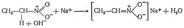Взаимодействие нитросоединений с щелочами протекает следующим образом: