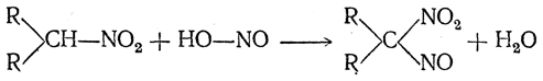 б) Вторичные нитросоединения с азотистой кислотой также выделяют воду, давая соединения, называемые псевдонитролами: