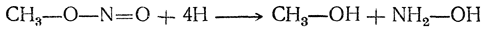 Эта реакция доказывает, что в нитросоединениях атом азота непосредственно связан с атомом углерода алкила. Напротив, при восстановлении изомерных нитросоединениям эфиров азотистой кислоты, в которых алкил связан с кислородом, получаются спирт и аммиак или гидроксиламин: