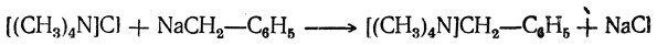 Однако все свойства этого вещества, начиная от глубокой окраски, доказывают, что этот продукт является аналогом исходного натрийбензила и что группировка [(CH3)4N) играет в нем роль металла. Растворы этого вещества проводят электрический ток, и при электролизе радикал бензил ведет себя как анион. Таким образом, азот и бензильный радикал связаны между собой не ковалентной, а ионной связью.