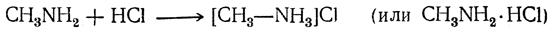 1. Образование солей. Амины жирного ряда, подобно аммиаку, способны соединяться с кислотами, даже с такими слабыми, как угольная кислота, и дают при этом соответствующие соли замещенных аммониевых оснований, например: