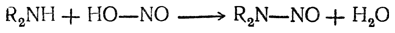 б) Вторичные амины при действии азотистой кислоты выделяют воду, образуя так называемые нитрозамины: