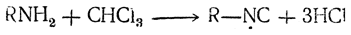 5. Образование и з о н и т р и л о в. Действием на первичные амины хлороформа в присутствии спиртовой щелочи получаются изонитрилы: