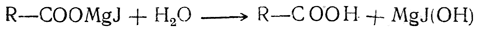 В первом случае получаются натриевые соли органических кислот, во втором — смешанные магниевые соли органической и галоидоводородной кислот; при действии на последние водой и минеральной кислотой получаются жирные кислоты: