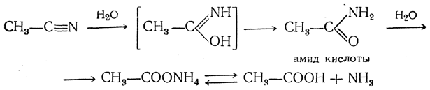 3. Омыление цианистых соединений, или нитрилов кислот. Например: