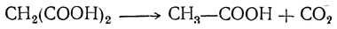 4. Декарбоксилирование двух- и трехосновных кислот. Одноосновные карбоновые кислоты получаются нагреванием двухосновных (и трехосновных) кислот, у которых два (или три) карбоксила находятся при одном и том же атоме углерода:
