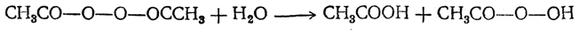 Перекись ацетила СН3СО—О—О—ОССН3 представляет собой кристаллическое вещество с т. пл. 30° Сит. кип. 63° С (при 21 мм). При нагревании выше температуры кипения сильно взрывает. Реагируя с водой, дает смесь уксусной кислоты и гидроперекиси ацетила: