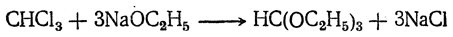 Ортомуравьиный эфир. Из ортоэфиров жирного ряда наибольшее значение имеет ортомуравьиный эфир НС(ОС2Н5)3, получающийся при действии хлороформа на спиртовый раствор алкоголята: