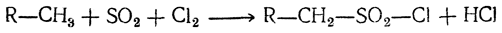 Сульфохлориды образуются также, наряду с продуктами хлорирования, при одновременном действии хлора и сернистого ангидрида на парафиновые углеводороды (сульфохлорирование):