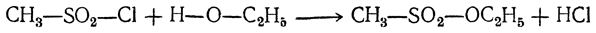 3. Образование сложных эфиров сульфокислот. При взаимодействии сульфохлоридов со спиртами (в присутствии соответствующего количества щелочи) получаются сложные эфиры сульфокислот: