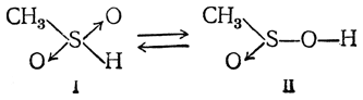 Однако при этерификации сульфиновых кислот спиртами в присутствии минеральных кислот получаются эфиры, производные формы II, являющейся таутомерной по отношению к форме I, например: