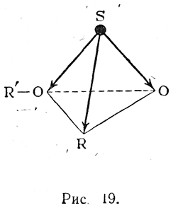 Оказалось, что эфиры сульфиновых кислот, подобно окисям сульфидов, могут быть разделены на оптические антиподы, ввиду чего им следует приписать аналогичную пирамидальную структуру (рис. 19).