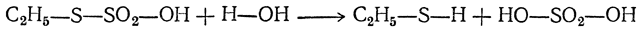 Свободные тиосульфокислоты непрочны и при подкислении растворов их солей распадаются на меркаптан и серную кислоту: