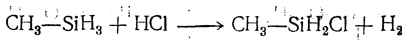 Нагреванием моно-, ди- и триалкилсиланов с сухим хлористым водородом в присутствии AlCl3 можно получить их галоидные производные, например: