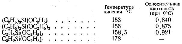 Метилхлорсилан CH3SiH2Cl и метилдихлорсилан CH3SiHCl2 — легколетучие жидкости; этилтрихлорсилан C2H5SiCl3 — жидкость относительной плотности 1,238 (при 20° С), кипящая при 99,5—100,5° С.