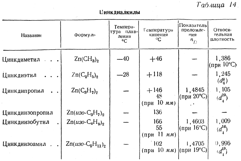 Смешанные соединения, например СН3—Zn—J, представляют собой твердые вещества. При попытках перегонки они превращаются в симметрические цинкдиалкилы: