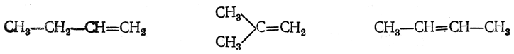 Начиная от этилена, как от первого члена ряда, можно обычным образом, т. е. последовательным замещением атомов водорода на метил, вывести гомологический ряд углеводородов, имеющих общую формулу CnH2n и называемых этиленовыми углеводородами или олефинами.