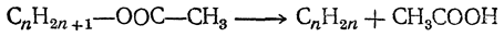 2. Расщепление сложных эфиров алифатических спиртов. Многие сложные эфиры алифатических спиртов легко распадаются при нагревании с образованием олефина и кислоты.