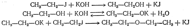 При этом наряду с этиленовыми углеводородами (особенно из первичных галоидных соединений) образуются также простые эфиры: