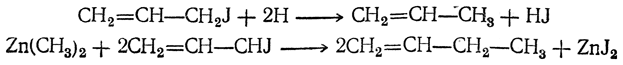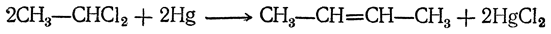 5. Отщепление двух атомов галоида от одного углеродного атома. Действием металлов на двугалоидные соединения, содержащие оба атома галоида при одном и том же атоме углерода, получаются этиленовые углеводороды: