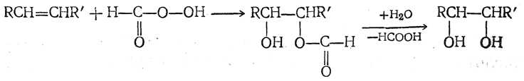 Еще легче получаются гликоли при нагревании олефинов с перекисью водорода в присутствии муравьиной кислоты; при этом сначала образуется надмуравьиная кислота