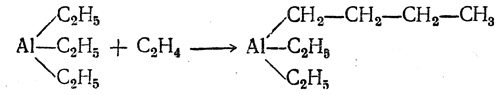 Полимеризация этилена под влиянием триалкилалюминия (Циглер) происходит путем внедрения этилена между атомом алюминия и алкилом: