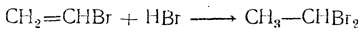 При этом водород направляется к более гидрогенизированному атому углерода, так что получается соединение, содержащее оба атома галоида при одном атоме углерода: