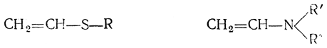 Аналогично спиртам могут реагировать меркаптаны и амины, давая соответствующие виниловые тиоэфиры (винилеульфиды) и виниламины: