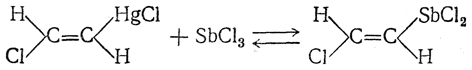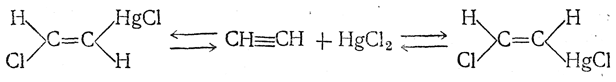 8. Присоединение галоидных солей. Галоидные соли некоторых элементов (HgCl2, AsCl3, SbCl3, TlCl2 и др.) присоединяются к ацетилену, например: