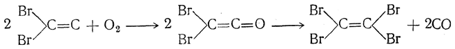 Основанием для такого заключения являлись чрезвычайная изменчивость таких соединений, их острый запах и ядовитость, напоминающая синильную кислоту, тогда как производные гомологов ацетилена, например СН3—С≡С—Сl, неядовиты и имеют сладковатый запах. Так, дибромацетилен С2Вr2 ядовит, имеет запах изонитрилов и при нагревании легко окисляется кислородом воздуха с образованием тетрабромэтилена и окиси углерода, что может быть выражено схемой: