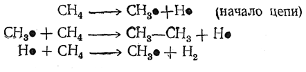однако механизм ее сложен и до сих пор неполностью выяснен. Несомненно, что она является радикальной цепной реакцией. Вероятнее всего эта цепь развивается так: