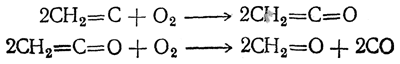 Кислород окисляет ацетилен при 300° С с образованием формальдегида и окиси углерода; вероятно, промежуточно образуется кетен: