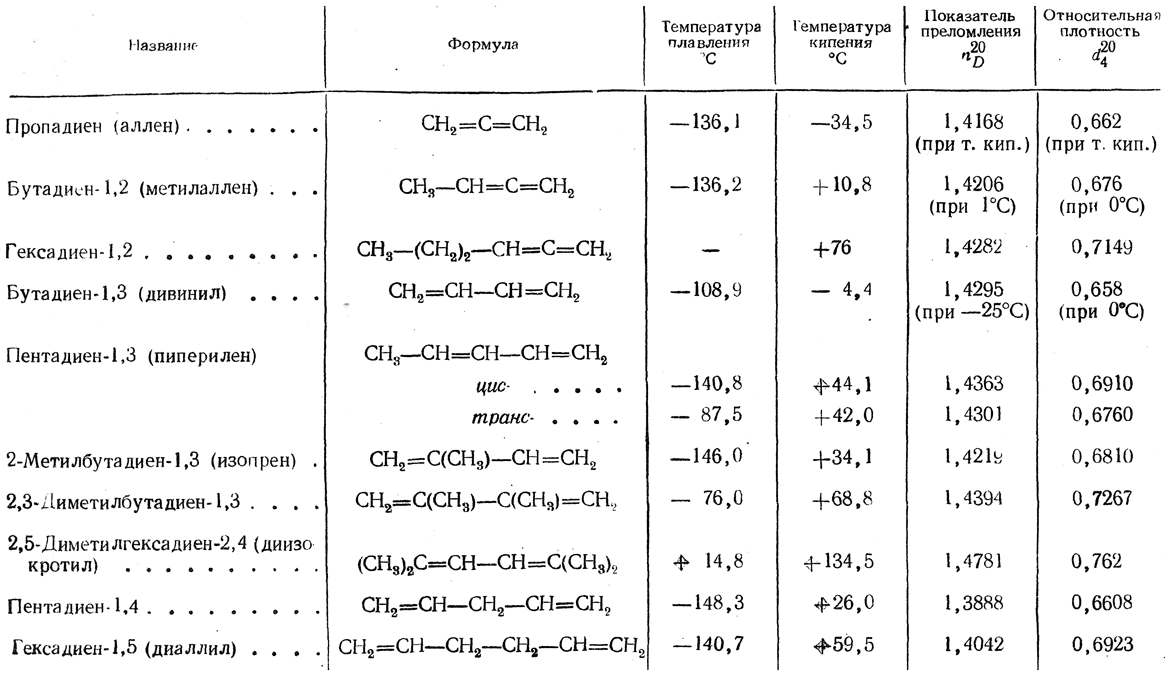 Таблица 19. Углеводороды с двумя этиленовыми связями