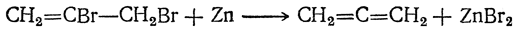 Аллен, или пропадиен, СН2=С=СН2 можно получить из 1,2,3-трибромпропана СН2Вr—СНВr—СН2Вr (трибромгидрина глицерина). При нагревании его с твердым едким кали отщепляется одна молекула бромистого водорода и получается дибромпропилен: