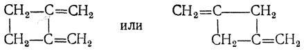 При нагревании аллена при 140° С под давлением получаются углеводороды (С3Н4)2, (С3Н4)3, (С3Н4)4 и пр. Первый из них, т. е. углеводород с удвоенным, против аллена, молекулярным весом, по-видимому, обладает циклическим строением (С. В. Лебедев):