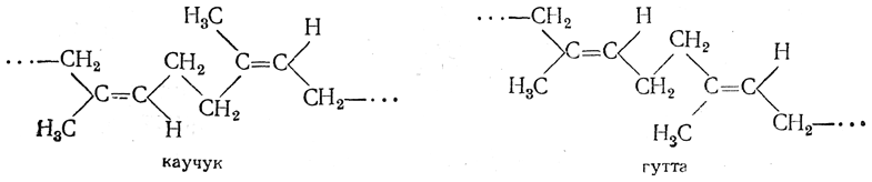 Гуттаперча, как и натуральный каучук, в основном состоит из высокомолекулярного углеводорода, отвечающего по составу формуле С6Н8 и называемого гуттой. Различие свойств гутты и каучука объясняется стереоизомерией этих углеводородов. Натуральный каучук имеет цис-строение, а гутта — транс-строение: